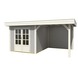Een tuinhuis geeft meer sfeer aan je tuin, zoals deze vrijstaande overkapping Java 304x396 cm incl. tuinhuisje en achterwand in de kleur grijs. Dit tuinhuis met een oppervlakte van 15 m² heeft zowel een open als een afgesloten gedeelte. Het open deel is een uitstekende plek om je houtblokken in op te slaan, het dichte gedeelte kan je gebruiken als een tweede huiskamer. Dit tuinhuis is gemaakt van Noord-Europees vurenhout, afkomstig van de fijnspar, een houtsoort die bekendstaat om zijn relatief lage prijs en makkelijke bewerking: veel gemak voor weinig geld. De dubbele deuren zijn voorzien van ramen, zodat er licht naar binnen valt. Ook heeft de blokhut een cilinderslot, zodat je hem kunt afsluiten. De dakbedekking van het platte dak bestaat uit EPDM-rubberfolie, een degelijk en waterdicht materiaal dat ongeveer 50 jaar meegaat.