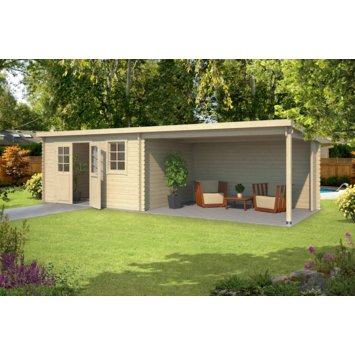Tuinhuis met overkapping Joy vurenhout onbehandeld 760 x 275 cm