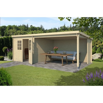 Een praktisch tuinhuis met een grote overkapping om je terrasset onder te zetten? Ga dan voor Tuinhuis Lis in de onbehandelde uitvoering. Dit vurenhouten tuinhuis is sterk en dankzij het stapelbouwprincipe makkelijk in elkaar te zetten. Het schuurtje heeft een aparte binnenruimte met hierin een dubbele deuren met echt glas, zodat je overdag genoeg lichtinval hebt. De deuren hebben een cilinderslot, je kunt hem dus veilig afsluiten. De twee wandelementen zorgen voor beschutting en veel privacy. Het licht hellende lessenaarsdak zorgt voor een natuurlijke afwatering en bestaat uit een basislaag bitumen, een waterdicht materiaal met een levensduur van ongeveer 20 tot 40 jaar.