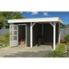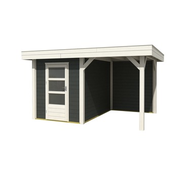 Een tuinhuis in je achtertuin is altijd handig voor het opslaan van bijvoorbeeld houtblokken of als tweede huiskamer. Zo ook de vrijstaande overkapping Lombok, uitgevoerd in een antraciete kleur. Het materiaal van dit huis is Noord-Europese vurenhout, een van oorsprong zachte houtsoort, makkelijk bewerkbaar en betaalbaar. Veel comfort voor weinig geld. Het dak is bedekt met hoogwaardig EPDM-rubberfolie, een betrouwbaar en waterdicht materiaal dat ongeveer 50 jaar meegaat. Het regenwater wordt netjes afgevoerd met de meegeleverde dakdoorvoer en afvoerpijp. De massieve palen zijn 12x12 cm dik en geven de overkapping een stoer en robuust uiterlijk. Dit tuinverblijf heeft een oppervlakte van 12 m² en biedt hiermee veel ruimte voor opslag. De aparte bergruimte en wandelementen zorgen voor een beschutte plek met veel privacy.