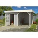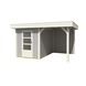 Een tuinhuis in je achtertuin is altijd handig voor het opslaan van bijvoorbeeld houtblokken of als tweede huiskamer. Zo ook de vrijstaande overkapping Lombok, uitgevoerd in een grijze kleur. Het materiaal van dit huis is Noord-Europese vurenhout, een van oorsprong zachte houtsoort, makkelijk bewerkbaar en betaalbaar. Veel comfort voor weinig geld. Het dak is bedekt met hoogwaardig EPDM-rubberfolie, een betrouwbaar en waterdicht materiaal dat ongeveer 50 jaar meegaat. Het regenwater wordt netjes afgevoerd met de meegeleverde dakdoorvoer en afvoerpijp. De massieve palen zijn 12x12 cm dik en geven de overkapping een stoer en robuust uiterlijk. Dit tuinverblijf heeft een oppervlakte van 12 m² en biedt hiermee veel ruimte voor opslag. De aparte bergruimte en wandelementen zorgen voor een beschutte plek met veel privacy.