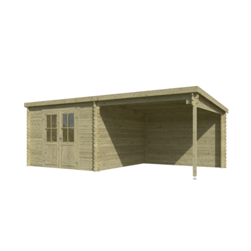 Tuinhuis met overkapping Olaf vurenhout geïmpregneerd 601 x 319 cm