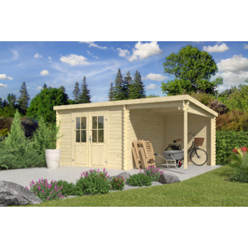 Tuinhuis met overkapping Tampa vurenhout onbehandeld 481 x 292 cm