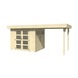 Dit tuinhuis is opgebouwd uit onbehandeld hout. Dat vergt wat meer onderhoud dan gedompeld hout of hout met een coating. Onbehandeld hout dient zelf behandeld en onderhouden te worden. Het tuinhuisje moet aan de buiten- en binnenkant nauwkeurig behandeld zijn. Extra aandacht gaat uit naar deuren en ramen, want die zijn veruit het kwetsbaarst. Het voordeel van onbehandeld hout zit hem in de afwerking. Je behandeld het hout dan zelf op een manier die past bij wat je voor ogen hebt i.v.m. met bijvoorbeeld schilderen.