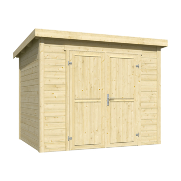 Het tuinhuis Mila 250x200 heeft een fundamentmaat van 250cm(b) x 200cm(d). De massieve 28mm dikke vurenhouten wanddelen zijn uitgevoerd met mes en groef. De stapelbouw methode in combinatie met hoekpalen en schroefsysteem zorgt voor een zeer sterke constructie. Dit moderne en strak vorm gegeven tuinhuis met haar dubbele dichte deur is bijzonder geschikt als berging voor uw tuinspullen. Het basispakket wordt geleverd inclusief een duidelijk montagehandleiding, onderdelenlijst en uiteraard alle benodigde bevestigingsmaterialen, zoals het deurbeslag. Dit tuinhuis wordt zonder dakbedekking geleverd, hiervoor is optioneel een EPDM dakbedekking pakket bestelbaar. Het stapelbouw blokhut systeem is door de handige doe-het-zelver prima zelf te monteren en dit tuinhuis wordt als bouwpakket bij u thuis geleverd.