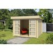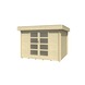 Het tuinhuis Minnesota 318x318 cm is een tuinhuis gemaakt van vurenhout. Het tuinhuis heeft een plat dak bekleed met EPDM rubber en heeft ruiten van kunststof. De wanden zijn maar liefst 28 mm dik en daarmee behoorlijk stevig. Wat dit tuinhuisje bijzonder maakt, is het gebruik van dubbele schuifdeuren van maar liefst 139 cm breedte. Omdat je geen rekening meer hoeft te houden met de draaihoek van traditionele deuren maak je optimaal gebruik van de buitenruimte. Tegelijkertijd is het huisje van een brede ingang voorzien. Zo kunnen ook grotere voorwerpen probleemloos naar binnen gebracht worden. Het tuinhuis Minnesota 318x318 cm wordt overigens geleverd inclusief hang- en sluitwerk. Het tuinhuisje kan daardoor snel in gebruik genomen worden.