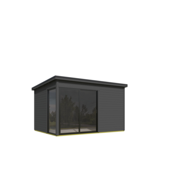 Dit modern vormgegeven tuinhuis Olivia heeft een fundamentmaat van 385cm(b) x 295cm(d). De 28mm dikke vurenhouten wanddelen zijn uitgevoerd met mes en groef. De stapelbouw methode in combinatie met hoekpalen en schroefsysteem zorgt voor een zeer sterke constructie. Dit mooie design tuinhuis wordt geleverd inclusief een aluminium schuifpui in de voorwand waarvan beide panelen schuivend zijn en het linker paneel afsluitbaar is met een sleutel. In de linkerzijde wordt een vast aluminium glaspaneel gemonteerd. De aluminium delen zijn mat antracietgrijs van kleur en de panelen zijn voorzien van enkelglas. Dit tuinhuis is door de enorme lichtinval ook geschikt als tuinkamer, atelier of als tuinkantoor. U kunt dit tuinhuis ook in spiegelbeeld monteren. Het basispakket wordt geleverd inclusief montagehandleiding, onderdelenlijst en uiteraard alle benodigde bevestigingsmaterialen. Dit tuinhuis wordt zonder dakbedekking geleverd, hiervoor is optioneel een EPDM dakbedekking pakket bestelbaar. Dit stapelbouwbouw systeem is door een handige doe-het-zelver goed zelf te monteren, je moet wel even met z'n tweeën zijn. Dit tuinhuis wordt als bouwpakket bij u thuis geleverd.