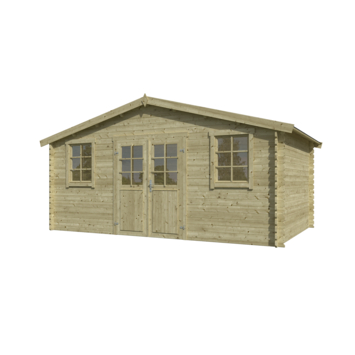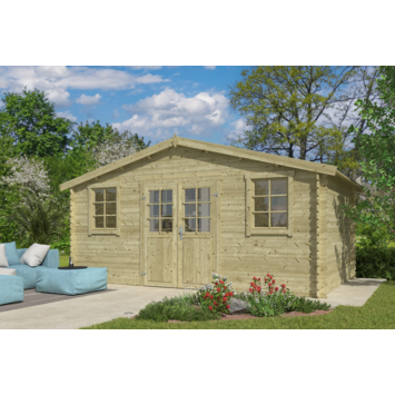 De wanden zijn 28 mm dik en opgebouwd volgens een stapelbouwmethode. Dit zorgt voor een stevige constructie en een logische montage. Het tuinhuis beschikt over 1 draai-kiepraam dat naar binnen opent. Het zadeldak geeft extra hoogte in het tuinhuis. Alle maatvoeringen zijn circa maten.