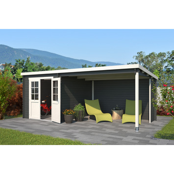 Dit tuinhuis is opgebouwd uit antraciet gecoat hout. De coating biedt buiten een strakke afwerking in een moderne kleur ook een beschermende laag. Het betekent echter niet dat het hout onderhoudsvrij is. Ook gecoat hout dient onderhouden te worden. In de loop van tijd moeten de beschadigde puntjes bij getipt worden en na 5-8 jaar behandel je het huisje opnieuw. Het tuinhuisje moet dan aan de buiten- en binnenkant nauwkeurig behandeld worden. Extra aandacht gaat uit naar deuren en ramen, want die zijn veruit het kwetsbaarst.