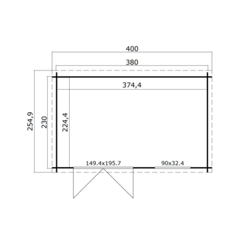 - Buitenafmetingen van 400 x 255 cm