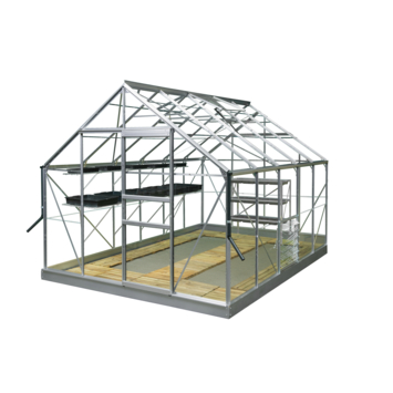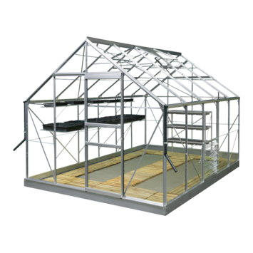 Met de Royal Well 108 Full Options kweekkas kies je voor gemak en functionaliteit. Deze tuinserre van 8,2 m² is opgebouwd uit een aluminium frame met 3 mm veiligheidsglas en wordt standaard geleverd met een stalen fundering. Je ontvangt een compleet accessoirepakket, waaronder een automatische raamopener, een louvreraam, twee regenpijpen en drie schaduwgaasrollen met montagemateriaal. Voor het inrichten zijn een geïntegreerde werktafel, schap en een kweekrek met bakjes inbegrepen. Alles zit erbij zodat je meteen aan de slag kunt en jouw tuinkas praktisch en overzichtelijk blijft.