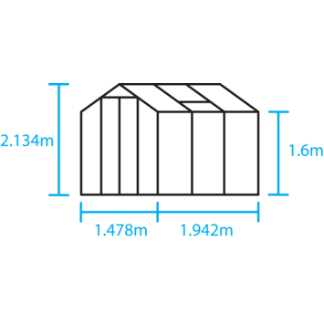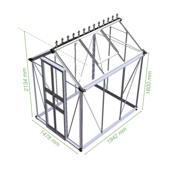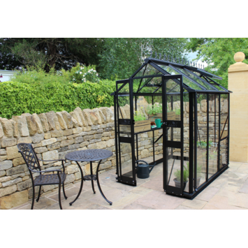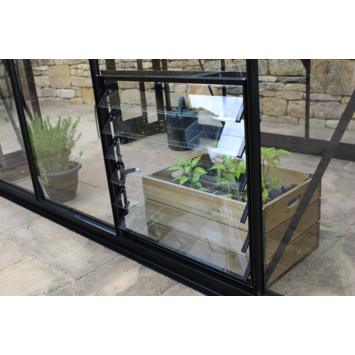 Met de Birdlip 46 van Royal Well haal je een compacte tuinkas in huis die niet alleen functioneel is, maar ook degelijk gebouwd. Het frame is zwart gecoat, wat zorgt voor een nette afwerking en bescherming tegen roest. Het 3 mm veiligheidsglas blijft beter op z’n plek dan standaard glas en is een stuk veiliger bij breuk. De dubbele schuifdeur heeft een slot en een lage instap, wat het gebruik extra makkelijk maakt. De kas wordt compleet geleverd met een dakraam voor luchtcirculatie en een stevige fundering. Perfect voor wie kwaliteit zoekt in een kleiner formaat.