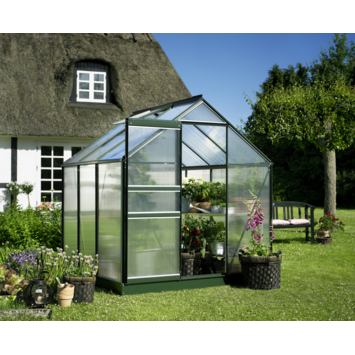 De Popular 66, groen gecoat. Deze kas doet zijn naam eer aan: wereldwijd wordt van hobbyist tot gevorderde kweker met plezier gebruik gemaakt van dit model! Deze tuinkas biedt veel waar voor zijn geld. De Popular kas is leverbaar in 4 verschillende lengtes, 2 verschillende kleuren en 3 verschillende afdichtingen! U kunt de kas dus samenstellen naar eigen wens. Het glas of polycarbonaat wordt met behulp van glasklemmen vastgezet, en tuindersglas met behulp van glashaken ‘dakpansgewijs gestapeld’. Hierbij overlappen de ruiten ongeveer 1 cm. Een goede beluchting van de kas is van levensbelang voor alle gewassen. De Popular kas is voorzien van maximaal 2 dakramen in de grootste modellen. De Popular is leverbaar in een blank aluminium of donkergroen gecoate uitvoering. Een bijpassende stalen fundering is apart verkrijgbaar. Het gebruik van een stabiele fundering is noodzakelijk voor het optimaal laten functioneren van de kas en biedt de juiste basis voor jarenlang kweekplezier!