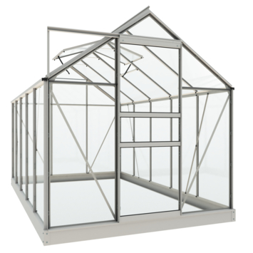 De Popular 106, groen gecoat. Deze kas doet zijn naam eer aan: wereldwijd wordt van hobbyist tot gevorderde kweker met plezier gebruik gemaakt van dit model! Deze tuinkas biedt veel waar voor zijn geld. De Popular kas is leverbaar in 4 verschillende lengtes, 2 verschillende kleuren en 3 verschillende afdichtingen! U kunt de kas dus samenstellen naar eigen wens. Het glas of polycarbonaat wordt met behulp van glasklemmen vastgezet, en tuindersglas met behulp van glashaken ‘dakpansgewijs gestapeld’. Hierbij overlappen de ruiten ongeveer 1 cm. Een goede beluchting van de kas is van levensbelang voor alle gewassen. De Popular kas is voorzien van maximaal 2 dakramen in de grootste modellen. De Popular is leverbaar in een blank aluminium of donkergroen gecoate uitvoering. Een bijpassende stalen fundering is apart verkrijgbaar en vormt de basis voor jarenlang kweekplezier. Het gebruik van een stabiele fundering is noodzakelijk voor het optimaal laten functioneren van de kas en biedt de juiste basis voor jarenlang kweekplezier!