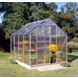 De Popular 86, blank. Deze kas doet zijn naam eer aan: wereldwijd wordt van hobbyist tot gevorderde kweker met plezier gebruik gemaakt van dit model! Deze tuinkas biedt veel waar voor zijn geld. De Popular kas is leverbaar in 4 verschillende lengtes, 2 verschillende kleuren en 3 verschillende afdichtingen! U kunt de kas dus samenstellen naar eigen wens. Het glas of polycarbonaat wordt met behulp van glasklemmen vastgezet, en tuindersglas met behulp van glashaken ‘dakpansgewijs gestapeld’. Hierbij overlappen de ruiten ongeveer 1 cm. Een goede beluchting van de kas is van levensbelang voor alle gewassen. De Popular kas is voorzien van maximaal 2 dakramen in de grootste modellen. De Popular is leverbaar in een blank aluminium of donkergroen gecoate uitvoering. Een bijpassende stalen fundering is apart verkrijgbaar en vormt de basis voor jarenlang kweekplezier. Het gebruik van een stabiele fundering is noodzakelijk voor het optimaal laten functioneren van de kas en biedt de juiste basis voor jarenlang kweekplezier!