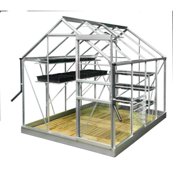 De Royal 86 FULL OPTIONS veiligheidsglas is een compleet ingerichte kas welke veel waar biedt voor zijn geld. Met de Royal FULL OPTIONS koopt u een kas met alle benodigde accessoires waardoor u direct kunt aanvangen met uw kweekplan! De Royal 86 FULL OPTIONS bestaat uit een aluminium frame. Deze kas is voorzien van een schuifdeur en 3mm veiligheidsglas. Ook krijgt u hierbij geleverd een stalen fundering, de stabiele basis voor jarenlang kweekplezier. Om uw kweekresultaten te optimaliseren leveren wij bij uw kas een automatische raamopener voor het dakraam en een louvreraam voor de ventilatie. Ook handig zijn de 2 regenpijpen voor het opvangen van het regenwater en de 2 rollen wit schaduwgaas van 5 x 1,8 m inclusief 40 snapshots (montage) voor het schermen van de planten. Nu de kas is voorzien van alle benodigdheden hebben wij ook gedacht aan uw eigen gemak; om prettig te kunnen werken in de kas wordt de Royal 86 Full Options geleverd met een geïntegreerde kweektafel van 62.5 x 200 cm voor de kweekbakken en potten en een geïntegreerd kweekschap van 32.5 x 200 cm voor kleine bakjes en gereedschap. Om het FULL OPTIONS pakket helemaal af te maken ontvangt u ook nog extra een kweekrek met 3 niveaus inclusief 12 kweekbakjes en 4 stevige kweekbakken van 15 liter om de verspeende plantjes in op te kweken.