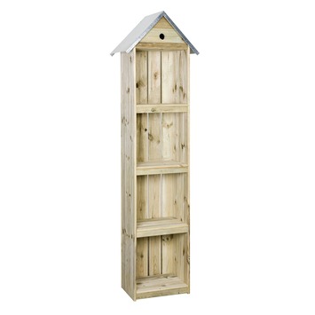 Deze kast is een multifunctionele kast voor in de tuin. Vul de tuinkast met decoratie en planten of berg er juist je tuingereedschap in op. De kast voor in de tuin heeft daarnaast een klein vogelhuisje boven in het dak. Zo geniet niet alleen jij, maar ook de vogels van deze mooie tuinkast. De kast is gemaakt van geschaafd en geïmpregneerd grenen hout. Doordat het hout geïmpregneerd is blijft de kast beter beschermd tegen water en schimmels. Zo kan je langer blijven genieten van je kast. Het opbergmeubel heeft een afmeting van 200x40x30cm. Kortom, met de Tuinkast 200x40x30cm heb je een mooie aanvulling voor in je tuin!