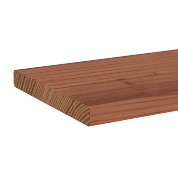 Deze bruin geïmpregneerde plank is zorgvuldig geschaafd en voorzien van vier afgeronde kanten, wat zorgt voor een strakke uitstraling en een veilig en prettig verwerkbaar product. Door het kunstmatig drogen wordt scheurvorming beperkt en blijft de plank langer mooi.