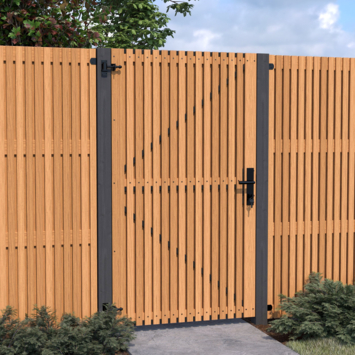 De tuindeur horizontaal Andalusië is 178 cm hoog, 99 cm breed, 4,8 cm diep en bestaat uit verticale latten die op een stalen frame en latten zijn vastgemaakt. Het slot gat zit in het midden van de tuindeur, waardoor de deur tweezijdig is en zowel links als rechtsdraaiend gemonteerd kan worden. Het ayous is thermisch gemodificeerd dat de volgende voordelen met zich meebrengt. Het hout is erg duurzaam en gaat gemiddeld 15 tot 20 jaar mee. Het is licht van gewicht doordat er veel vocht uit het hout is onttrokken, ook werkt het hout hierdoor nagenoeg niet. Doordat het hout zachter is, is het gemakkelijk te bewerken. De tuindeur verticaal Andalusië heeft een bijpassend lattenscherm Andalusië. Het combineren van deze 2 artikelen zorgt voor een mooi geheel.