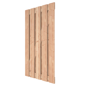 Met deze poort maak je een mooie toegang naar jouw tuin. Vooral in combinatie met het tuinscherm Douglas zal dit erg fraai staan. Maar je kan deze poort natuurlijk ook gebruiken in combinatie met een schutting in een andere kleur of houtsoort voor een speels effect. De poort is gemaakt van ruw Douglas hout en dient voor extra bescherming direct gebeitst te worden. De tuindeur bestaat uit 9 planken van ca. 15 bij 140 millimeter, die zijn bevestigd met RVS-schroeven. De poort heeft een standaard maat van ca. 180x90 cm en biedt gemiddelde privacy. Deze tuindeur kan zowel links- als rechtsdraaiend worden geplaatst. Bevestigingsmateriaal dient apart te worden aangeschaft.