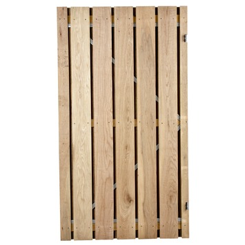 De Eiken deur is sterk en duurzaam en is een goed alternatief voor tropisch hardhout. Door het metalen frame creeert u nog meer stevigheid. Het hout is goed te behandelen met een hardhout beits. De poort zorgt voor privacy en veiligheid aan uw tuin.