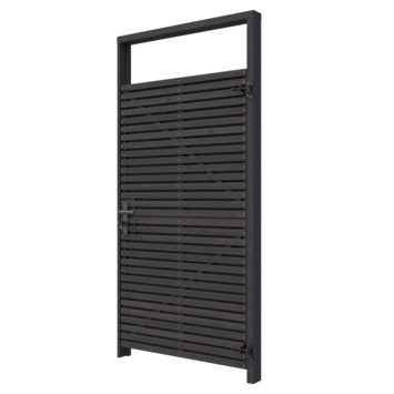 De tuindeur horizontaal Andalusië zwart is 178 cm hoog, 99 cm breed, 5 cm diep en heeft weinig doorkijk. De tuindeur bestaat uit 63 horizontale latten die op een stalen frame en latten zijn vastgemaakt. Het slotgat zit in het midden van de tuindeur, waardoor de deur tweezijdig is en zowel links als rechtsdraaiend gemonteerd kan worden. De tuindeur wordt inclusief hengen en duimen geleverd.