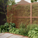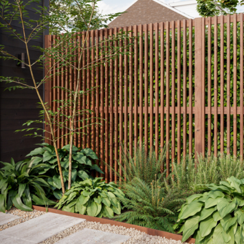 Dit tuinscherm is opgebouwd uit 30 grenen latten die zorgvuldig zijn geplaatst voor een evenwichtige en luchtige uitstraling. Het enkelzijdige ontwerp maakt het scherm bijzonder geschikt voor plaatsing langs erfgrenzen, terrassen of zithoeken. De natuurlijke bruine kleur sluit mooi aan bij verschillende tuinstijlen, van modern tot landelijk.