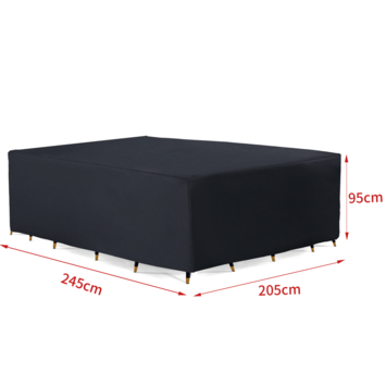 De tuinset hoes rechthoekig 245 x 205 cm zwart beschermt je rechthoekige tuinset tegen regen, vuil en stof. Je trekt de hoes eenvoudig over de tuinset wanneer deze niet in gebruik is en verwijdert hem net zo makkelijk wanneer je wilt zitten. De hoes is gemaakt van polyester en geschikt voor buitengebruik. Met een lengte van 245 cm, breedte van 205 cm en hoogte van 80 cm past hij op de meeste gangbare rechthoekige tuinsets en bedekt de set volledig. Zo blijft je tuinset netjes tussen gebruik door en klaar voor gebruik zonder dat je hem telkens hoeft schoon te maken.