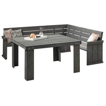 Maten die vermeld staan op deze site kloppen niet precies met de werkelijke maten. Ook lopen de planken in de hoek van de zitting niet precies in elkaar over.