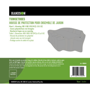Met deze Handson Tuinsethoes 180x180x95 cm bescherm je jouw tuinset tegen vuil en regen. Deze hoes heeft een afmeting van 180x180x95 cm en is gemaakt van polyester. Ook weert de hoes UV-licht en is waterafstotend. Zorg dat de hoes aan de onderkant een beetje open blijft, hierdoor kunnen de tuinmeubelen blijven ademen, dit voorkomt eventuele schimmelvorming. Inclusief draagtas voor de hoes.