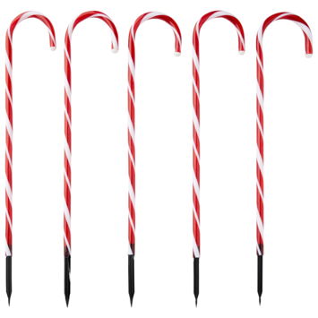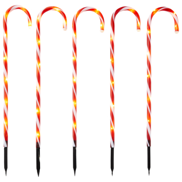 Versier je tuin met deze vrolijke tuinstekers in de vorm van een zuurstok. De set bestaat uit 5 stuks en uit 40 LED lampjes. De tuinsteker beschikt over een hoogte van 140 cm.
