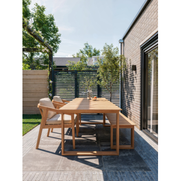 Door het compacte formaat van 66 x 55 x 78 cm neemt de stoel weinig ruimte in. Het acacia houten frame is geolied en geschikt voor gebruik buiten. De maximale belasting is 120 kg.
