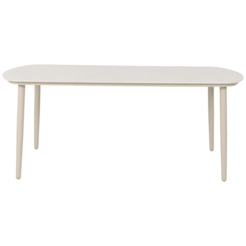 De Dover tuintafel in beige met hardstenen blad biedt direct een stijlvolle en stevige eetplek voor zes personen.
