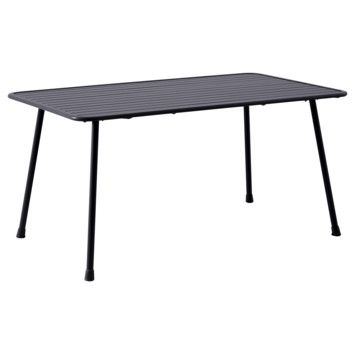 Tafel Romee is ideaal als buitentafel. De matzwarte tuintafel van staal is 150 cm lang en biedt genoeg ruimte voor vier tot zes personen. Het blad is 2,5 cm dik en rust op een stevig stalen frame. Dankzij de hoogte van 72,5 cm tot de onderkant schuif je er makkelijk tuinstoelen onder. Door het gebruik van staal is de tafel weerbestendig en eenvoudig schoon te maken. De rechte vorm en strakke afwerking maken deze tafel geschikt voor elk terras of balkon waar je lekker buiten wilt eten of borrelen.