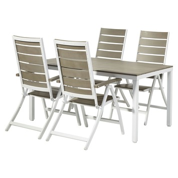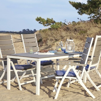 De TAFEL SAN MARINO 160X90CM is een ruime tuintafel. De tafel is wit met grijs en heeft een kunststof houtlook waardoor de tafel een strakke maar ook natuurlijke uitstraling heeft. De TAFEL SAN MARINO 160X90CM is daarom een tafel die past in vele tuinen.