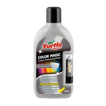 De kleurwas Turtle Wax Color Magic Zilver 500ml maakt krasjes op uw auto minder zichtbaar. De wax herstelt namelijk niet alleen de glans van uw auto, maar ook de kleur. Dankzij de kleurherstellende werking camoufleert de wax diepe krassen en beschadigingen door steenslag. De Turtle Wax Color Magic Zilver 500ml gebruikt u makkelijk en snel dankzij de handige chipstick die er gratis bij wordt geleverd. Het product is geschikt voor alle soorten lak, inclusief metallic lak, en geeft zelfs maandenlang bescherming. De wax gaat tot wel 25 wasbeurten mee. Met de Turtle Wax Color Magic Zilver 500ml reinigt u uw autolak direct en geeft u doffe, zilveren lak weer nieuwe glans en kleur.