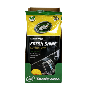 Turtle Wax Fresh Shine Matt Finish Wipes bieden een efficiënte oplossing voor het reinigen van interieurkunststoffen in je auto. Deze doekjes zijn perfect voor harde oppervlakken zoals dashboards, instrumentenpanelen, deurbekleding en stoelen. Na gebruik krijgen de behandelde oppervlakken een stijlvolle matte afwerking, terwijl het langdurige antistatische schild stof en vuil afstoot. De doekjes hebben een heerlijke citrusgeur en worden geleverd in een hersluitbare verpakking, waardoor ze hun vochtigheid behouden voor herhaald gebruik. Ideaal voor het snel en effectief onderhouden van je interieur.