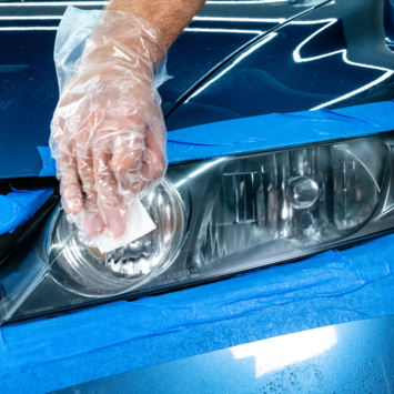 Een katoenen doek is nodig om de Headlight Lens Repair & Renew Compound aan te