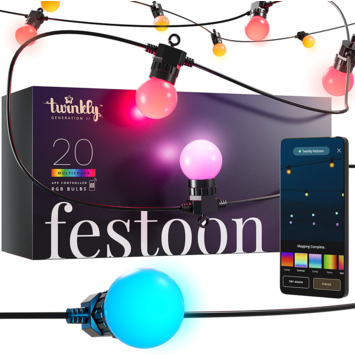 Geef je buitenverlichtingdecoratie een extra dimensie met Twinkly Festoon, de slimme LED-lampen. Of je nu een zomerfeestje organiseert, vrienden uitnodigt voor een etentje, of gewoon ontspant, Festoon zorgt voor de perfecte sfeer. Deze hoogwaardige, app-gestuurde LED's zijn verkrijgbaar in verschillende lengtes en aantallen lampen, en bieden buitengewone helderheid en kleurkwaliteit in meer dan 16 miljoen kleuren. Geschikt voor gebruik zowel binnen als buiten.