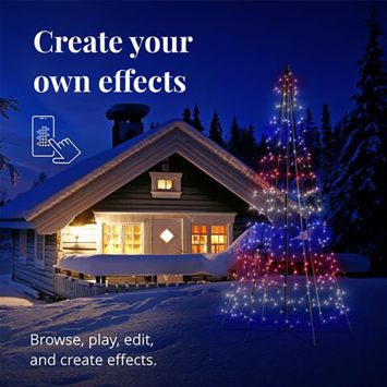 Twinkly Light Tree - Een vlaggenmast-kerstboom met 300 RGB+W LED's (16 miljoen kleuren + warm wit), allemaal app-gestuurd. Deze boom, met een hoogte van 2 meter en een zwarte draad, komt inclusief paal. Het is de ideale buiten smart kerstverlichting decoratie die licht en kleur op een unieke manier naar voren brengt.