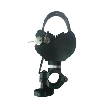 Compleet uitgevoerd, met hangslot en bevestigingsriemen.