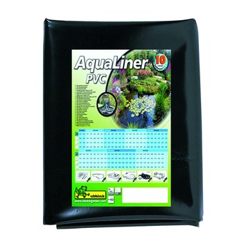 Met de zwarte Ubbink-vijverfolie Aqualiner PVC van 0,5mm dik en een afmeting van 6x4meter legt u eenvoudig een vijver aan. PVC-vijverfolie is soepel en daardoor makkelijk te verwerken. Daarnaast is de PVC-folie UV-stabiel, vorstbestendig en vis- en plantvriendelijk. De kwaliteit van de Ubbink-vijverfolie PVC is dan ook hoog. U krijgt niet voor niets 10 jaar garantie op deze Aqualiner PVC-folie. De PVC-vijverfolie heeft afmetingen van 6meter bij 4meter. Dit is genoeg voor de aanleg van een kleine vijver. Afhankelijk van de diepte van de vijver, hoe schuin de wanden wanden zijn en de aanwezigheid van eventuele plantenranden, kiest u welke afmeting zwarte vijverfolie van PVC u nodig heeft.