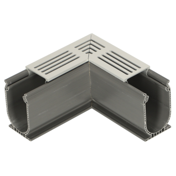 Met dit hoekstuk kan je de afvoergoot eenvoudig koppelen als deze langs de hoek van het terras is aangelegd om het zo mooi aan een stuk door te laten lopen.