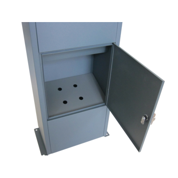 De V-part Victorian is een robuuste staande brievenbus in de kleur antraciet is van gepoedercoat gegalvaniseerd staal gemaakt. Ideaal geschikt voor grotere poststukken en kleine pakketjes. Bij het sluiten van de klep valt de post een verdieping lager in het grote van dat door middel van een cilinderslot is afgesloten. De grote inworpopening heeft een afmeting van 36x17cm en bevind zich achter de klep. Kleur: Antraciet Materiaal: Gepoedercoat gegalvaniseerd staal Afmeting: 26.5x41x110cm Afmeting inworpopening: 36x17cm Positie postuitname: voorzijde Inclusief cilinderslot met 2 sleutels