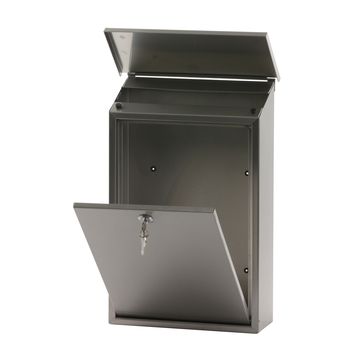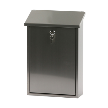 De V-part Wandbrievenbus Toledon in RVS is voorzien van een cilinderslot met 2 sleutels. De inworpopening met een afmeting van 25 x 4 cm, zit onder de klep zodat de post beschermd is. Bevestingsmateriaal wordt meegeleverd.