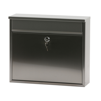 RVS wandbrievenbus met klep en opening aan de voorzijde. Voorzien van cilinderslot.