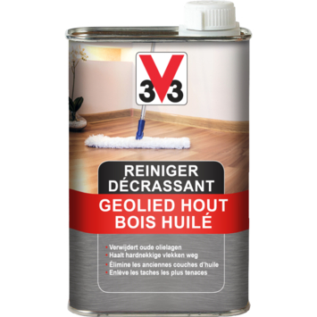V33 reiniger geolied parket 1 liter verwijdert de oude olielagen van een te renoveren geolied parket. De reiniger verwijdert daarnaast ook hardnekkige vlekken. De inhoudsmaat is 1 liter.