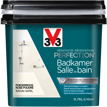 Pak je badkamer aan met V33 badkamer renovatieverf. Deze handige verf is geschikt voor vele type ondergronden zoals; wandtegels, hout, melamine, multiplex, inox en metaal. Daarnaast hoef je bij het gebruik van deze badkamerverf geen primer te gebruiken, dus je kunt gelijk aan de slag. De verf is goed reinigbaar en door de Aquaresist technologie goed bestand tegen onderhoudsproducten.