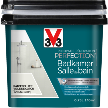 Met de V33 Renovatieverf Perfection Badkamer katoen 750 ml pak je makkelijk je badkamer aan zonder moeilijke voorbereidingen. Deze renovatieverf is geschikt voor het schilderen van wandtegels, badkamermeubels, werkbladen en meer, of ze nu nieuw of oud zijn. Je hebt geen primer nodig en afbijten hoeft ook niet.