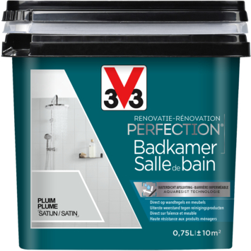 Met de V33 Renovatieverf Perfection Badkamer pluim 750 ml pak je makkelijk je badkamer aan zonder moeilijke voorbereidingen. Deze renovatieverf is geschikt voor het schilderen van wandtegels, badkamermeubels, werkbladen en meer, of ze nu nieuw of oud zijn. Je hebt geen primer nodig en afbijten hoeft ook niet.